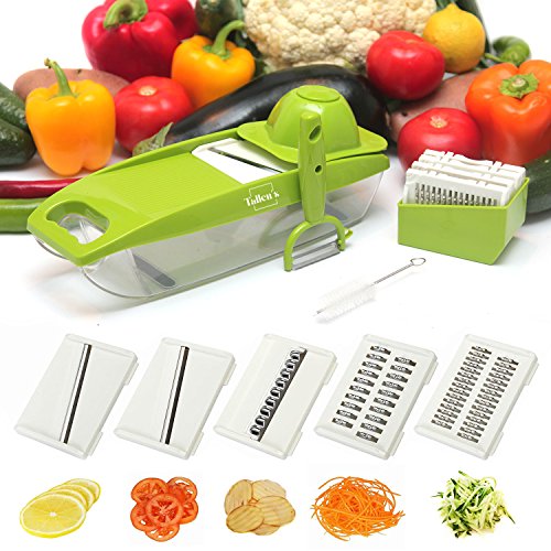 Deluxe Mandoline Slicer with Peeler-5 Interchangeable Stainless Steel Blades, Cleaning Brush, ABS Premium Plastic! Cheese Grater, Julienne Slicer, Safety Hand Guard Included-FREE Ebook-ByTallen's