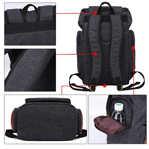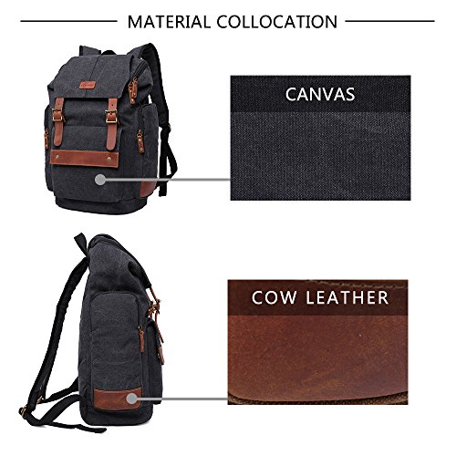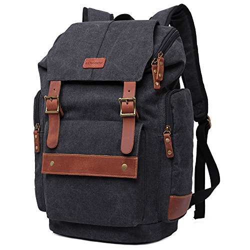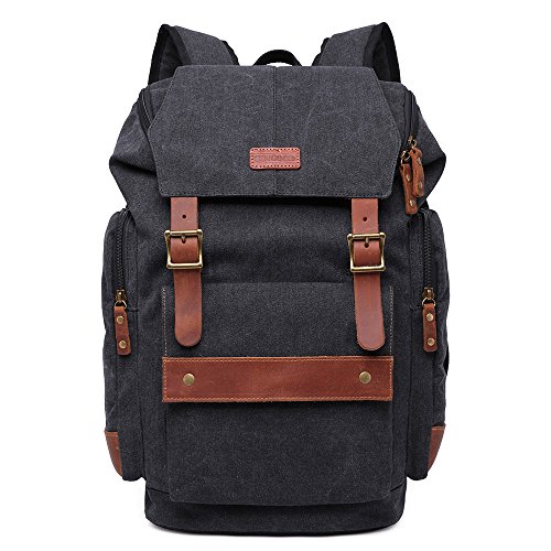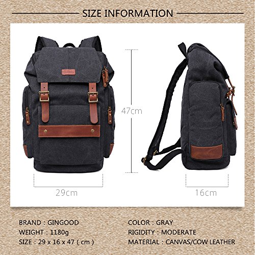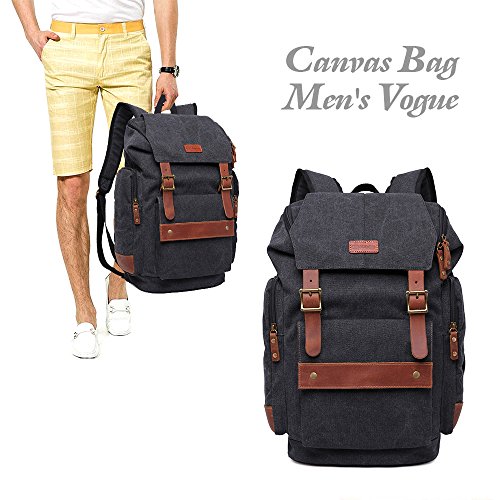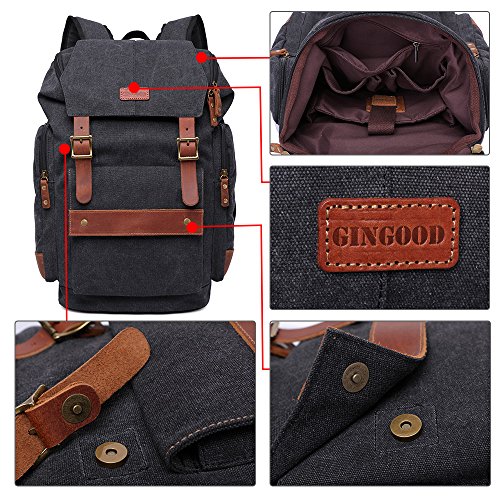 Title : GINGOOD Mens Canvas Backpacks Rucksack with Large Capacity for Outdoor/Hiking/College #803 Black