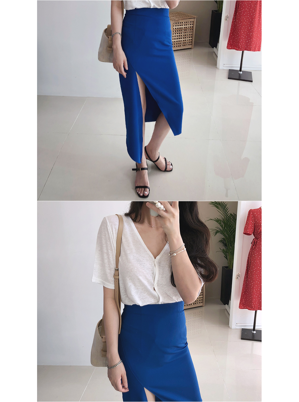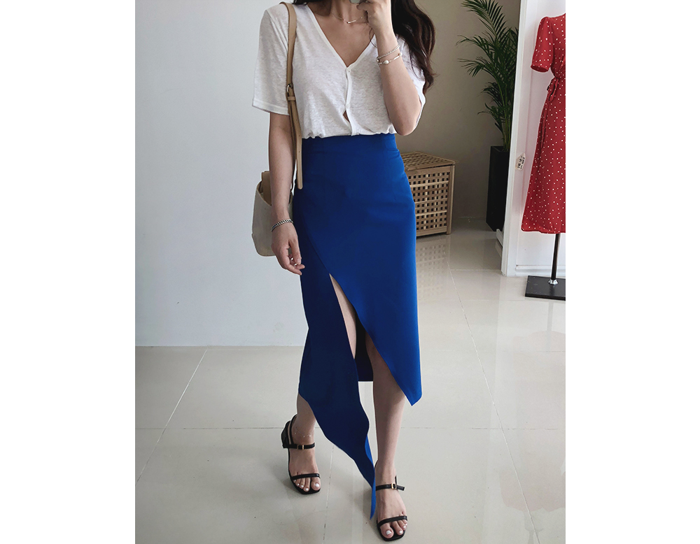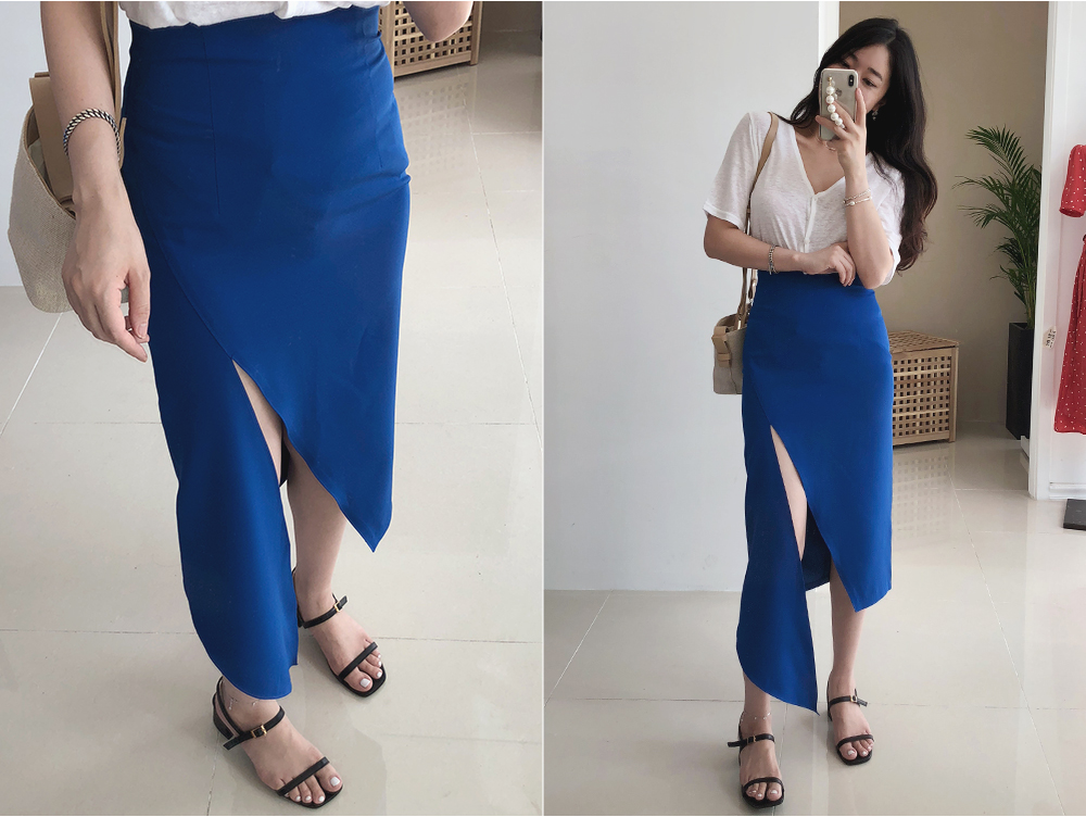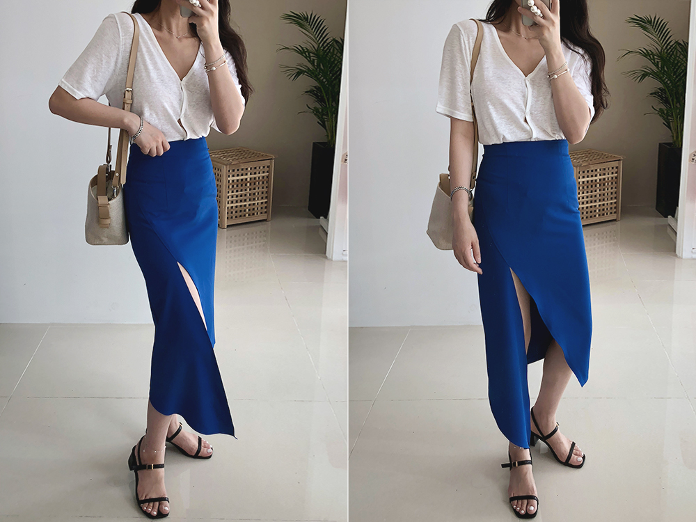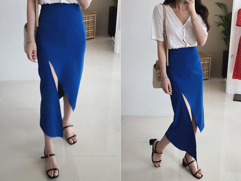 슬림 절개 언발 스커트