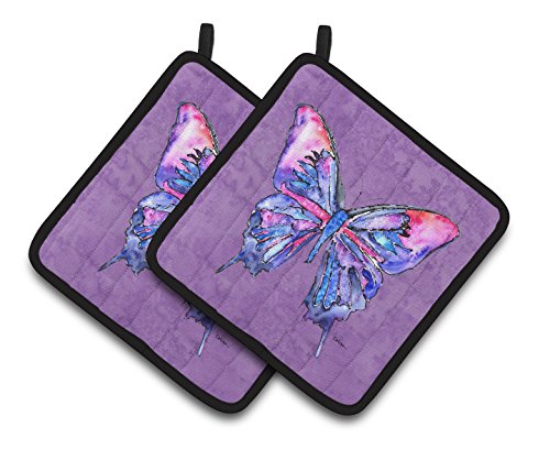 Caroline's Treasures Butterfly On Purple Pair of Pot Holders 8860PTHD, 7.5HX7.5W, Multicolor