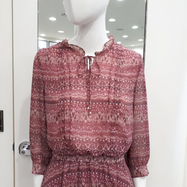 하늘하늘한 쉬폰프릴원피스입니다은은한 패턴들이 고급스럽게보이며 편하게 입기아주좋아요