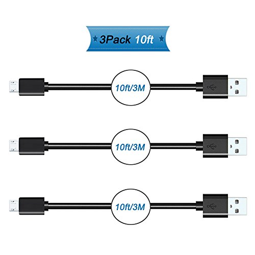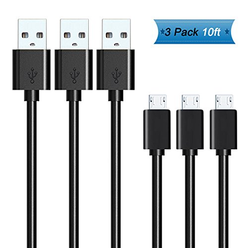 PS4 Controller Charging Cable, Micro USB Charger Cord for Dual Shock 4 Charger, Playstation 4, Xbox One & PS4 Pro/ Slim, Nexus, LG, Motorola, Android Smart phones,3pcs 10ft/3M