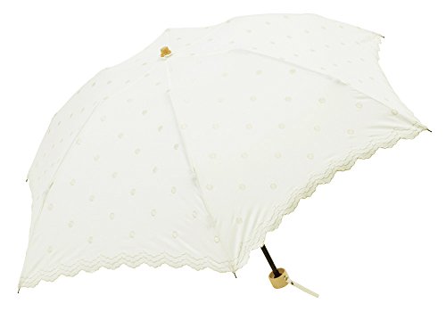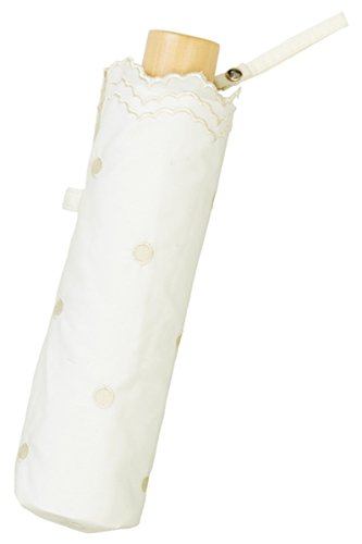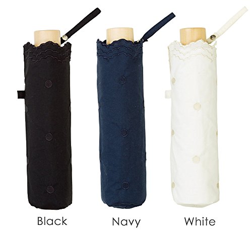 -. Title : ビコーズ ドット&ドット刺繍 ミニ 全3色 折りたたみ傘 日傘/晴雨兼用 手開き ドット 6本骨 47cm UVカット 軽量 木製ハンドル