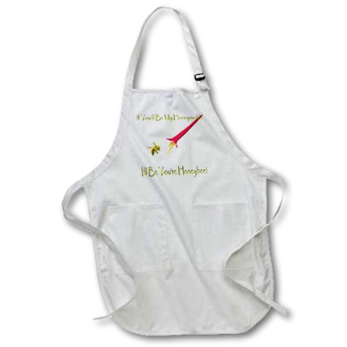 3dRose apr_33018_1 Honeysuckle and Honeybee Full Length Apron with Pockets, 22 by 30-Inch, White