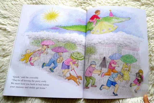 Color pencil style, kind, a story about joy, party ... and crocodile!