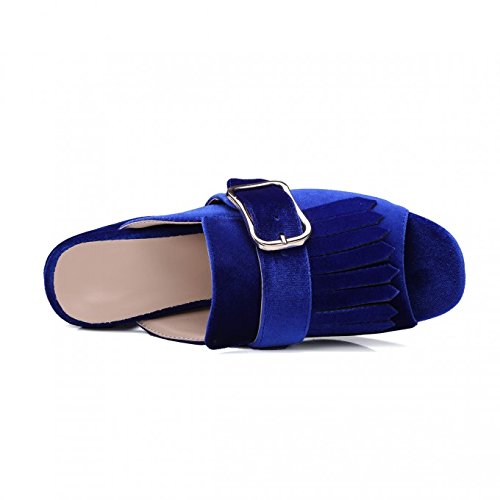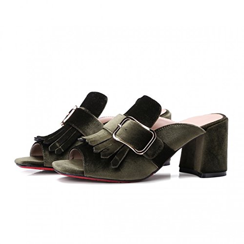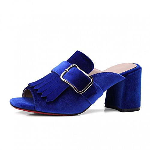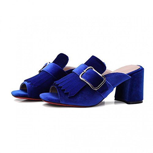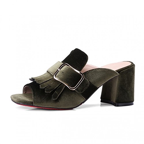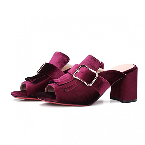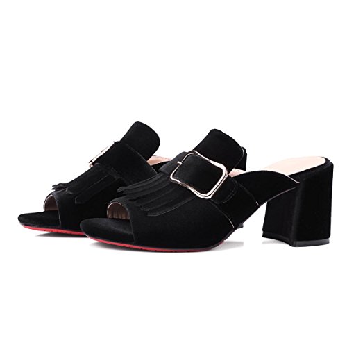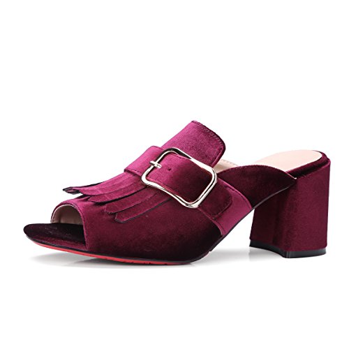 (DecoStain)/Women's/Slippers/DIRECT FROM USA/DecoStain Women's Peep Toe Tassel Button Block Heel Slippers