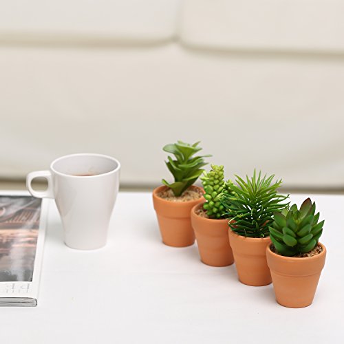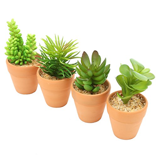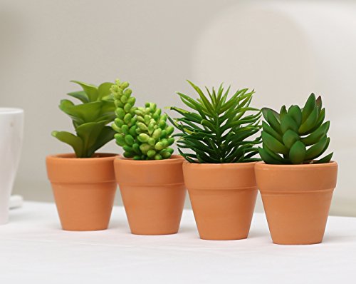 Small Assorted Artificial Succulent Plants in Terra Cotta Clay Planter Pots, Set of 4