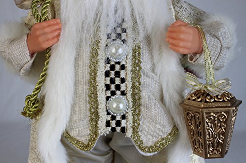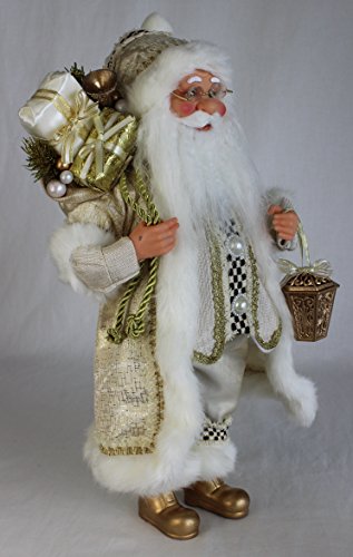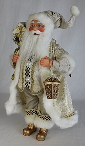 16" Inch Standing Cream Checkered Santa Claus Christmas Figurine Figure Decoration 16702