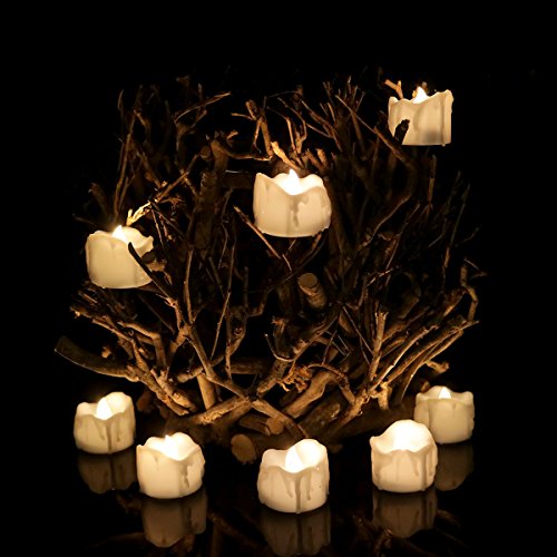 Youngerbaby 12pcs Warm White Flickering Timing Function Flameless LED Tea Lights Candles with Timer(6 hrs on 18 hrs Off),Wax Dripped Battery Operated Electronic Candles for Wedding, Party , Chirstmas