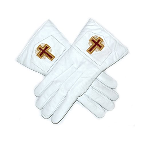 (The Masonic Exchange)/Accessories/Gloves/DIRECT FROM USA/Eminent/Past Commander White Leather Gloves with Gauntlets by The Masonic Exchange