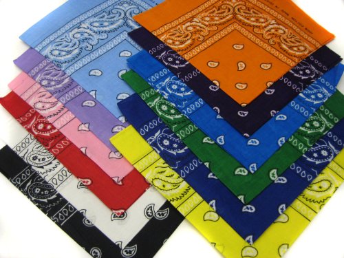 | Paisley Bandanas By The Dozen 100% Cotton 12-Pack 22" x 22" |