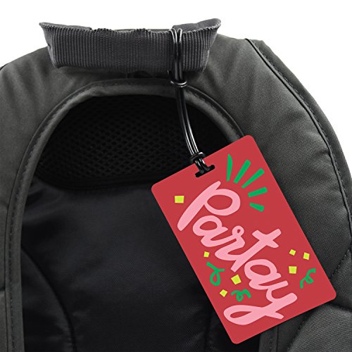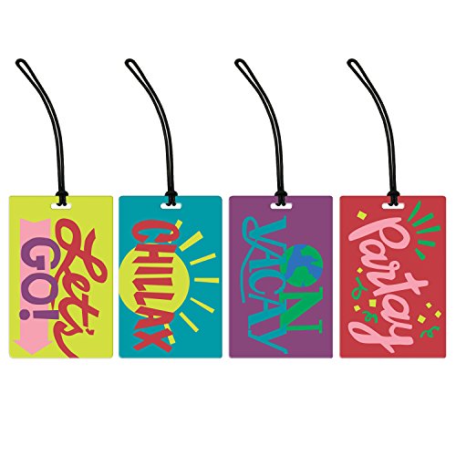 All R. Nichols designs begin as intricate hand cut collages. This art style creates the colorful and impactful silhouette images. Tell all your fellow travelers that you are about to set off on a full loving adventure with this luggage tag set. Bright words declare: Partay, Let's Go, Chillax and On Vaccay.