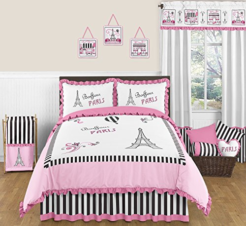 Sweet Jojo Designs Black and White Stripe Window Valance for Paris Collection