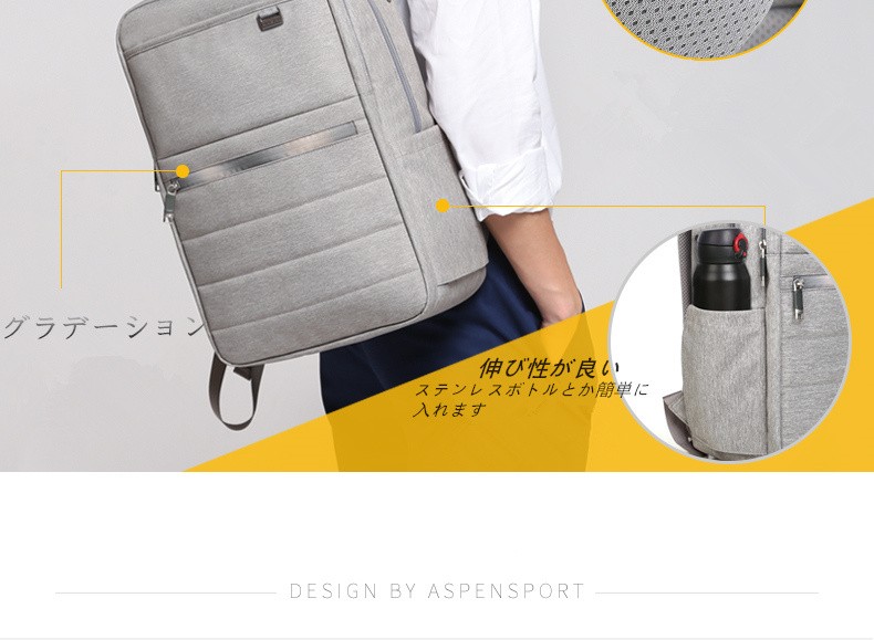 シンプルなデザインのビジネスリュックです。大容量で、A4ファイル、ノートパソコン、タブレットなど、いろんなものを入れても全然平気!また、防水加工済素材で作られたのため、裏のものをしっかり守る!通学・通勤だけでなく、出張や旅行にもオススメ!素材:シフォン 陽イオンポリエステルサイズ:高さ43*長さ29*厚さ16cmカラー:ブルー グレー ブラック生産国:中国※商品画像はパソコンのモニター環境や部屋の明るさにより多少色の変化が感じられる場合があります。※機械による生産の為、繋ぎ目の若干のズレやほつれ・接着跡・サイズや形に多少の誤差が生じる場合があります。※サイズ詳細は床置き実寸のため、若干の誤差がある場合があります。※生産時期により予告なく仕様を変更する場合があります。購入の際には上記内容をご理解・ご了承したものとします。