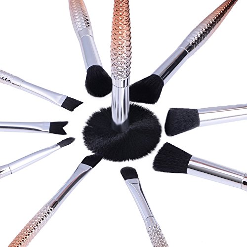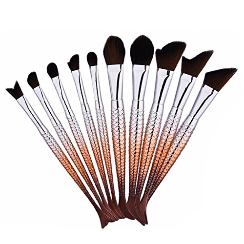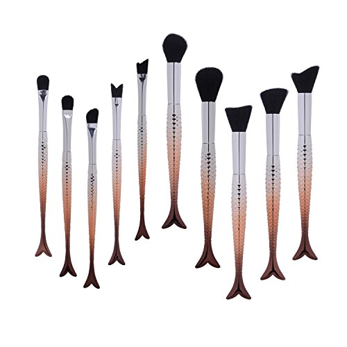 - These 10 pieces brown mermakd make up brushes are made of high density soft nylon bristles, non-shedding & smell free, have silky touch feel and easy to hold powder. Perfect for a make llose search and safe for sensitive skin.