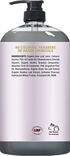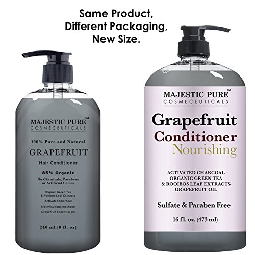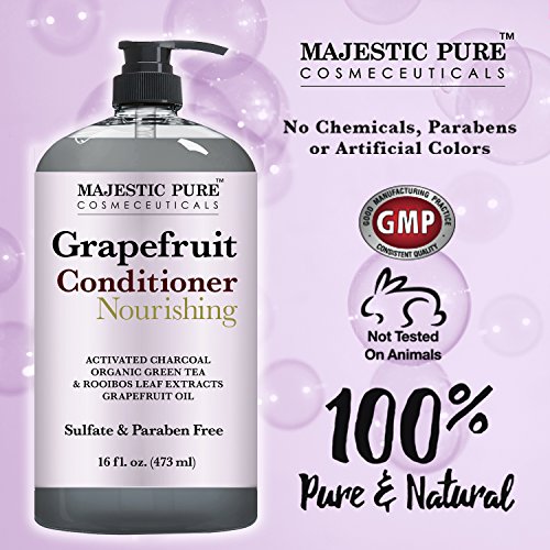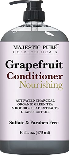 Majestic Pure Pink Grapefruit Hair Conditioner for damaged hair; contains 85% of organic content; with powerful ingredient such as organic green tea & rooibos leaf extracts, activated charcoal, MSM, and pink grapefruit essential oil; sulfate free; paraben free; best natural conditioner