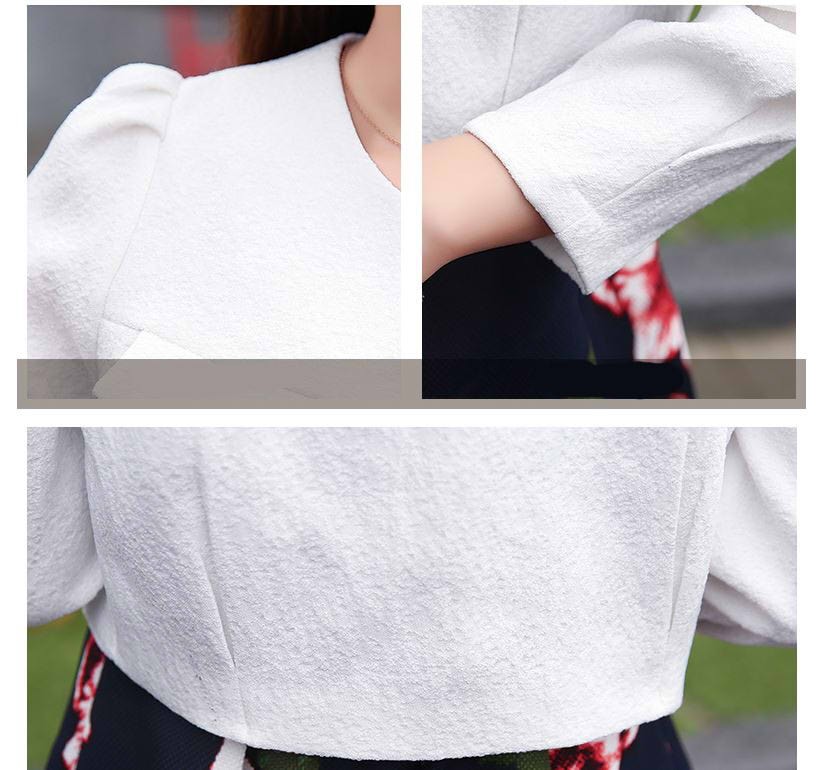上下セット★クラシカル ノーカラージャケット+Vネック 花柄 Aライン ワンピース セットアップ