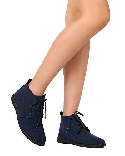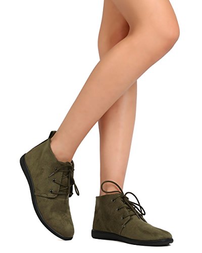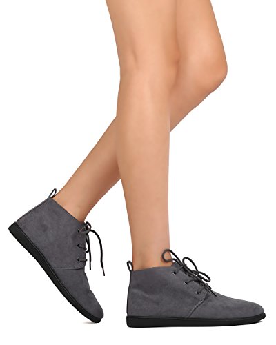 Refresh FH51 Women Faux Suede Round Toe Lace Up Desert Bootie