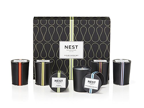 ReleaseDate : 2016-05-16 Studio : NEST Fragrances Publisher : NEST Fragrances Binding : Misc. Product Description Packaged in a luxurious and sophisticated soft-touch gift box, this updated gift set comes complete with six (6) mini votive candles in our classic top-selling fragrances, including bamboo, grapefruit, Moroccan amber, Sicilian tangerine, ocean mist sea salt and cedar leaf Lavender. The mini votive containers feature a black matte finish and are wrapped in a distinctive band unique to each fragrance. 0