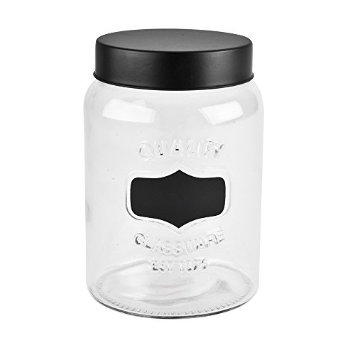 Housewares International 33835 Blue Harbor Glass Quality Jar with Chalkboard Label, 43 oz, Clear