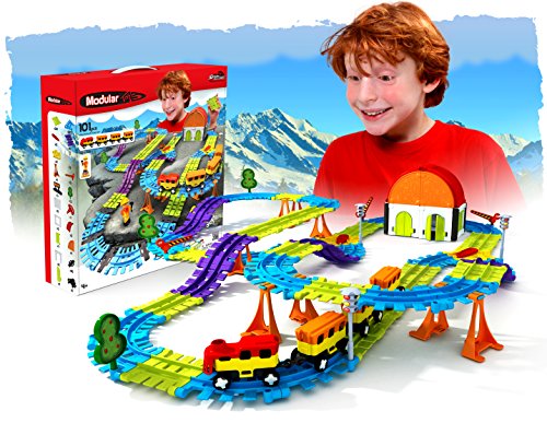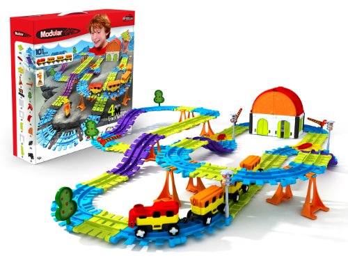 -. Feature : Includes 101 building pieces / Includes Locomotive and trains / Includes stickers