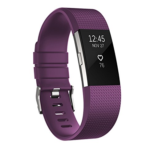 Replacement accessory band for Fitbit Charge 2 hr is made of flexible and durable elastomer material with surgical-grade stainless steel buckle, Size: Small ( 5.5"-6.7" ), Large ( 6.7"-8.1" )