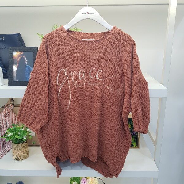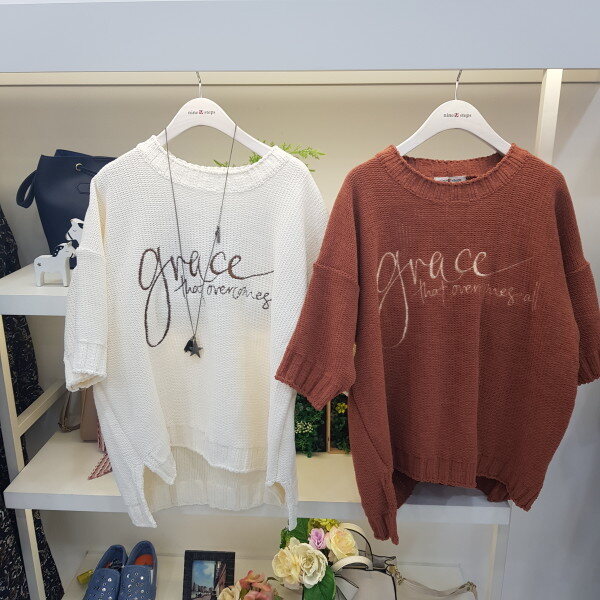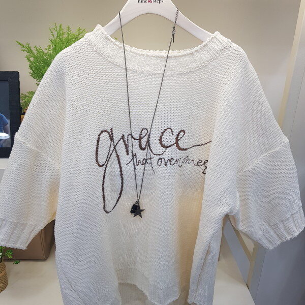 반팔 자수 레터링 니트