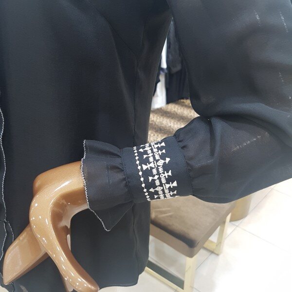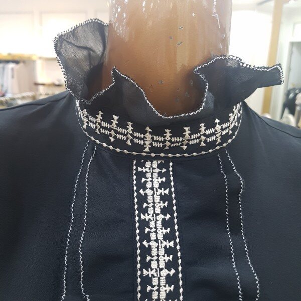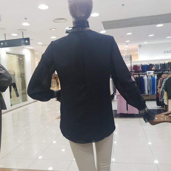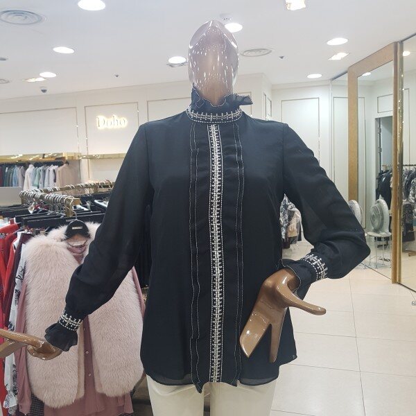 자수포인트 하이넥 블라우스입니다.