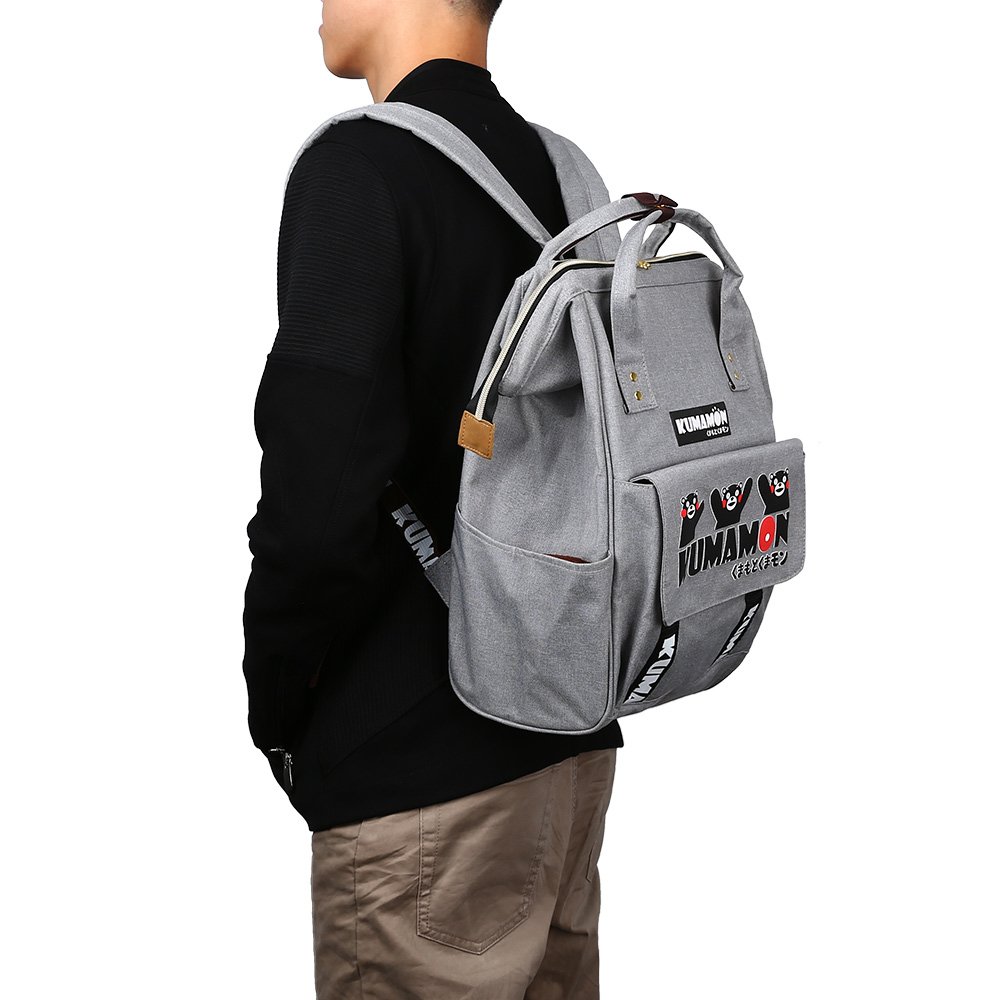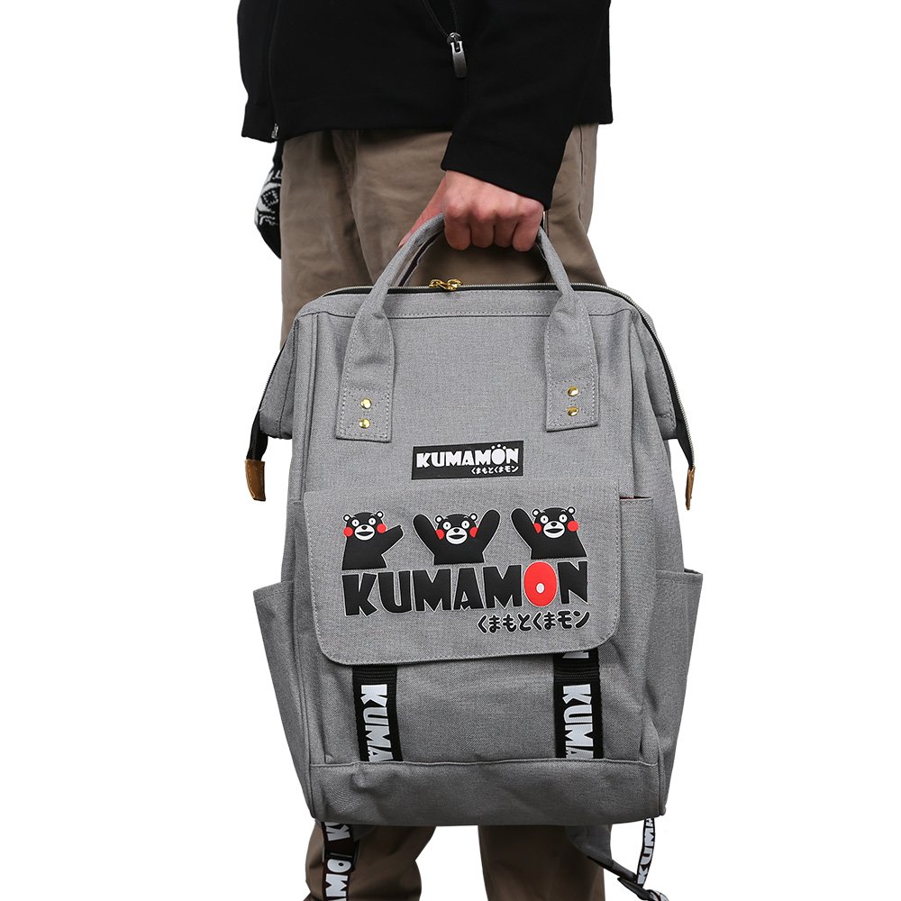 Handle backpack has two handles above and with buttons.