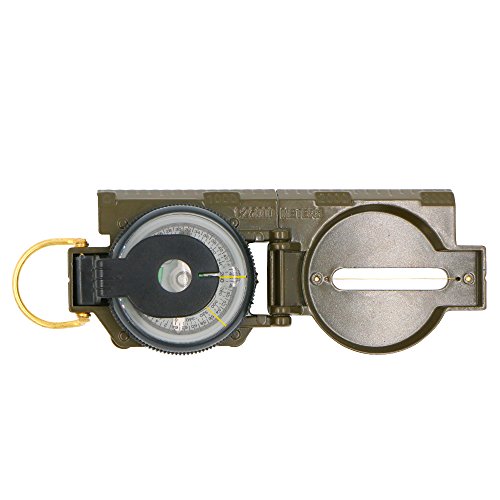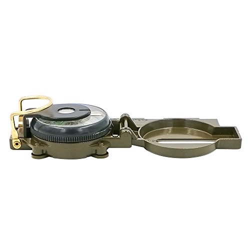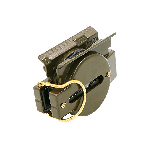 Hiking Compass, Bukm Field Military Marching Army Outdoor Camping Survival Climbing Biking Lensatic Metal Sighting Compass with Foldable Metal Lid (Army Green)