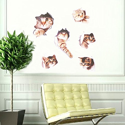 6PCS 3D Wall Stickers Cats Self Adhesive, Kids Wall Decals / Removable Vinyl Art Murals for Living Room Baby Rooms Bedroom Toilet House Wall DIY Decoration
