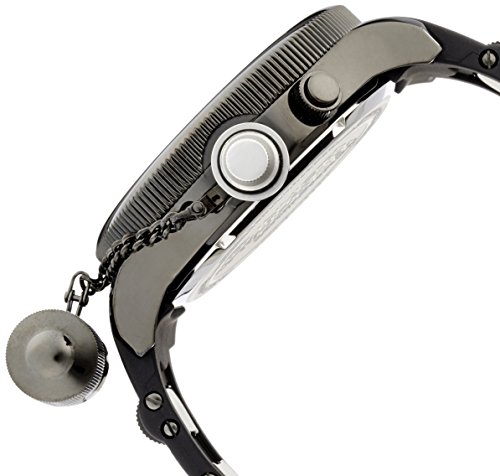 • Mineral crystal; Polished gunmetal stainless steel case; Black polyurethane strap with gunmetal stainless steel barrel inserts