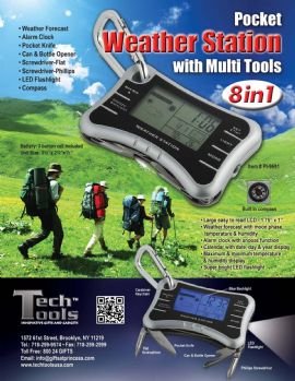 -. Binding : Lawn & Patio -. Brand : P.R.Incess International -. Color : White -. Department : unisex-adult -. EAN : 0700629096919 -. Feature : Large Easy to Read LCD - 1.75 x 1.1 in. with Blue Backlight. / Weather forecast with Moon Phase, Temperature &Humidity. / Calendar with date, day &year display. / Maximum &minimum temperature &humidity display. -. Label : P.R.Incess International -. Manufacturer : P.R.Incess International -. Model : 2016 -. MPN : PI-9691 -. PackageQuantity : 1 -. PartNumber : PI-9691 -. ProductGroup : Lawn & Patio -. ProductTypeName : OUTDOOR_LIVING -. Publisher : P.R.Incess International -. Studio : P.R.Incess International -. Title : P.R.Incess International PI-9691 Pocket Weather Station Keychain With Multi Tools -. UPC : 700629096919
