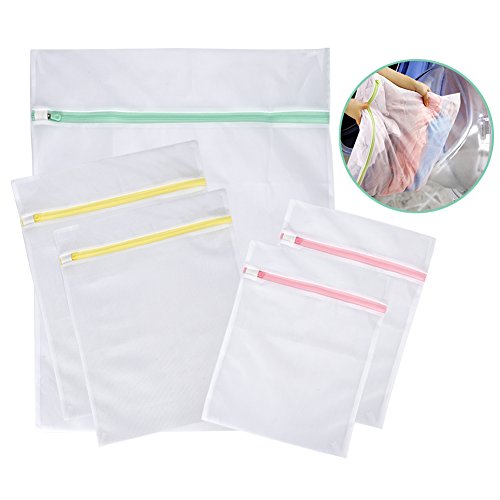 Immuson Set of 5 Mesh Laundry Bags for Laundry, Blouse, Hosiery, Stocking, Underwear, Bra and Lingerie, Travel Laundry Bag with Premium Zipper Thicker Durable Fabric Bags 1 large & 2 medium & 2 small