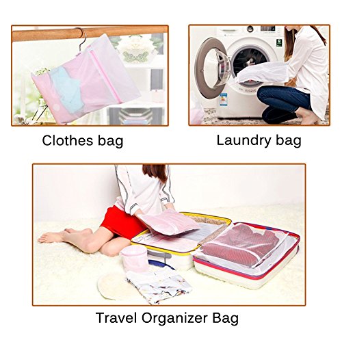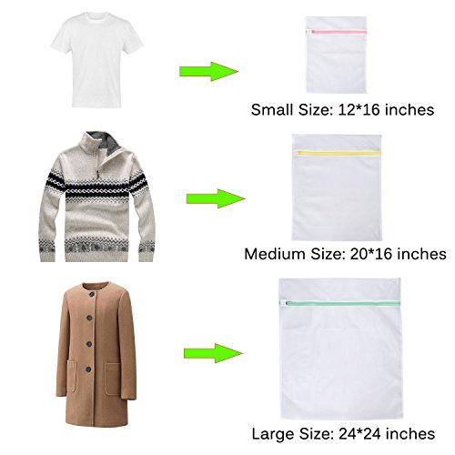 Package included: Set of 5 laundry bags (1 large size: 24*24 inch, 2 x Medium size: 20*16 inch, 2 x Small size: 16*12 inch).