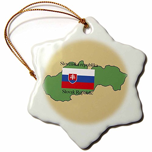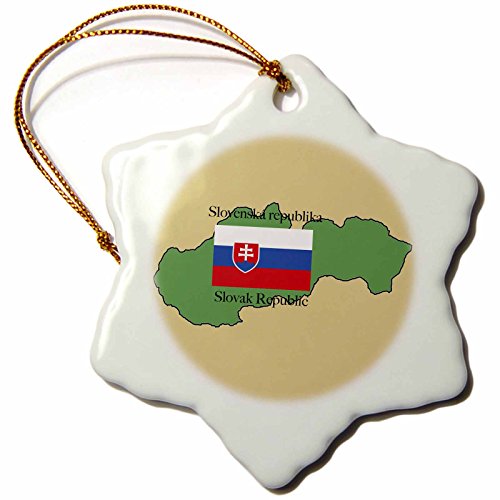 3dRose LLC orn_39223_1 Porcelain Snowflake Ornament, 3-Inch, "The Map and Flag of Slovakia with The Slovak Republic in Both English and Slovakian"