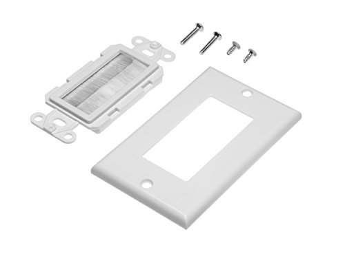 EASILY RUN CABLES THROUGH WALL, Single brush wall plate easily creates cable access from any wall.