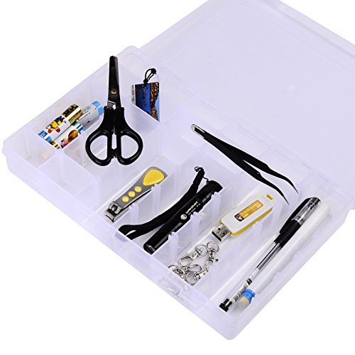 -. Binding : Kitchen -. Brand : D-buy -. Color : Clear -. EAN : 0717850258511 -. Feature : Box's total size (L*W*H): 10.8" x 6.9" x 1.7". Each grid's size (L*W*H): 1.8" x 1.2" x 1.7" / Color: clear. Material: durable plastic. / Removable dividers: The grid inside the box can be moved, so you can adjust the dividers to create your own size compartments. / 36 grids clear hard plastic storage box organizer, simple and practical. / Perfect for storing earrings, rings, beads and other mini goods. Can also be used to store a variety of pills and a variety of small drugs. -. IsAutographed : 0 -. Label : D-buy -. Manufacturer : D-buy -. MPN : 14163000 -. PartNumber : 14163000 -. ProductGroup : Home -. ProductTypeName : HOME -. Publisher : D-buy -. Studio : D-buy -. Title : D-buy 36 Grids Clear Plastic Jewelry Box Organizer Storage Container with Adjustable Dividers 10.8" x 6.9" x 1.7" -. UPC : 717850258511