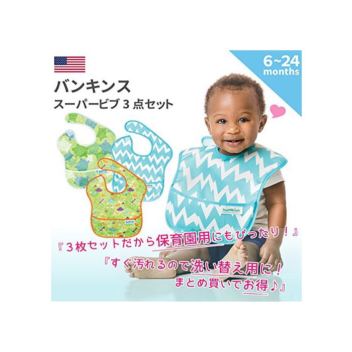 Bumkins 밴 금《스》 슈퍼《비부》/스타이(유아용 턱받이)3점 세트【일본 정규품】세탁기에서도 씻을 수 있 식사용 방수《비부》 6~24개월