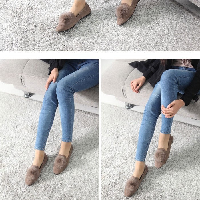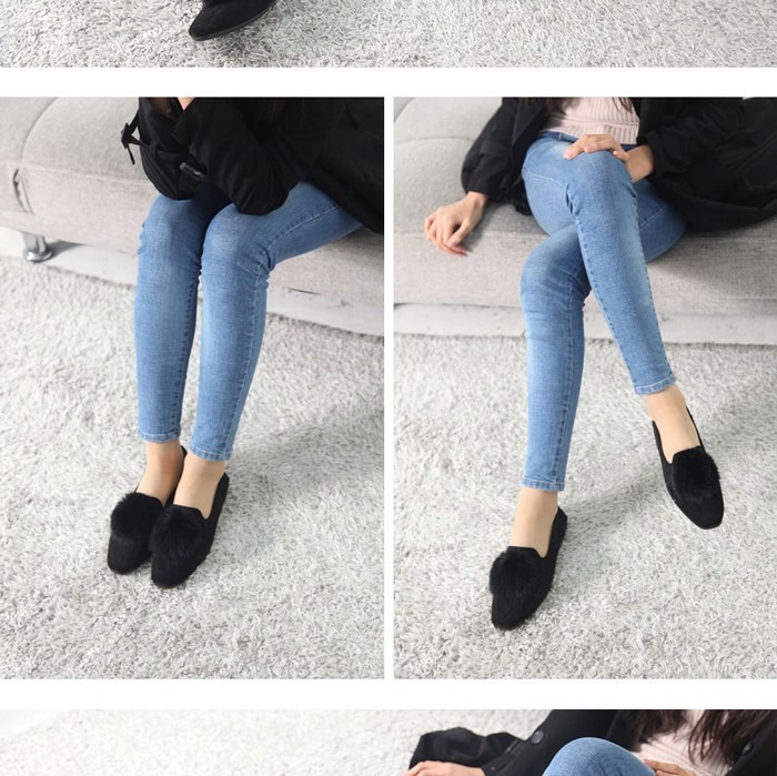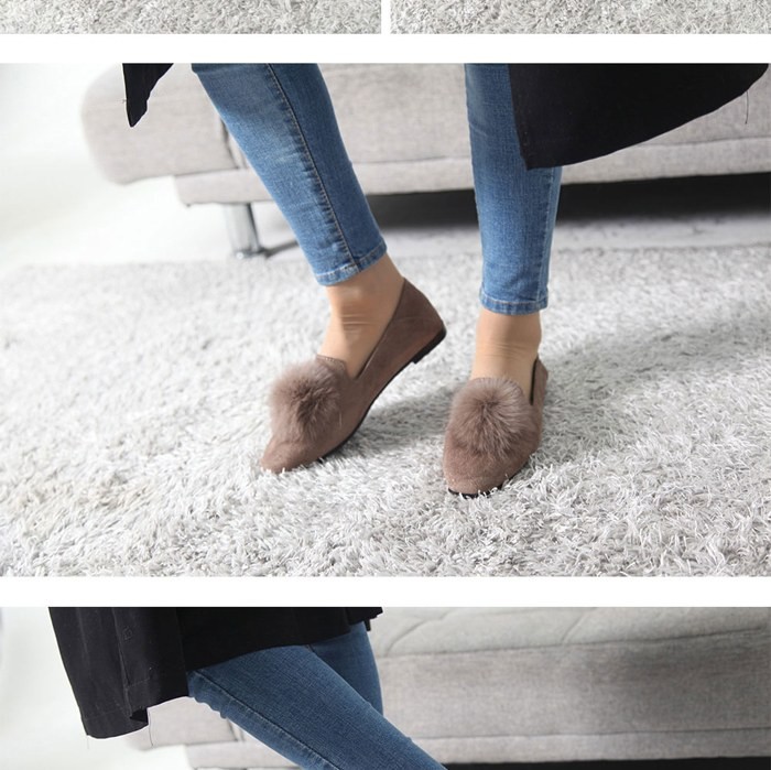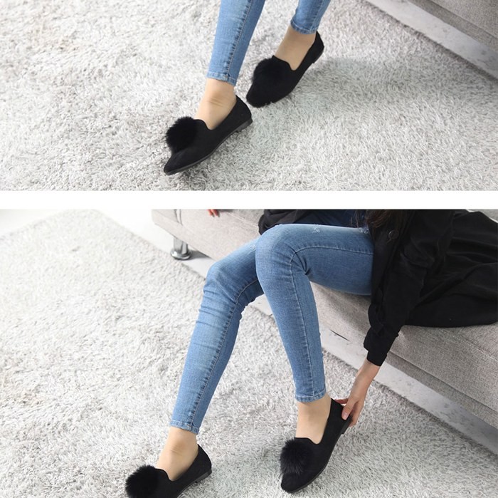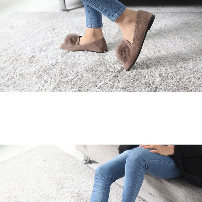 商品名:フラットパンプス レディース スエード調 フェイクファー 2017 秋 冬 ファッション 靴 婦人靴