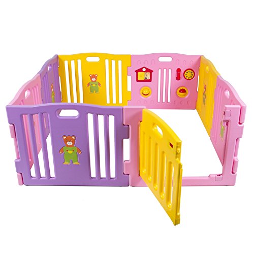 - Feature : 100% brand new and high quality. // Shipping time 5-15 days. / Best Choice Products is proud of presenting your this brand new pink 8 panel child's play-pen. This play-pen features ball spinners, telephone, and a swinging hinged door with safety lock. The size of this playpen can increase or decrease by removing or adding panels. It also may create interest and encourage mobility for your child. Makes a great holiday gift. We purchase our products directly from the manufacturer, so you know you're getting the best prices possible. / FEATURES: Quality product Perfect for children up to 4 yrs of age Activity board: ball spinners, telephone Swinging hinged doors, and safety lock on doors BPA and LEAB free / DESCRIPTION: 8 Panels Assembled dimensions: 62'' in diameter, panels: 31" W x 23.5" H / PLEASE NOTE: Our digital images are as accurate as possible. However, different monitors may cause colors to vary slightly. Some of our items are handcrafted and/or hand finished. Color can vary and slight imperfections are normal for metal as the hand finishing process as we feel, adds character and authenticity to those items.
