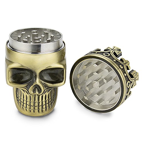 Golden Bell Upgraded Full Metal Spice Herb Skull Grinder - Bronze