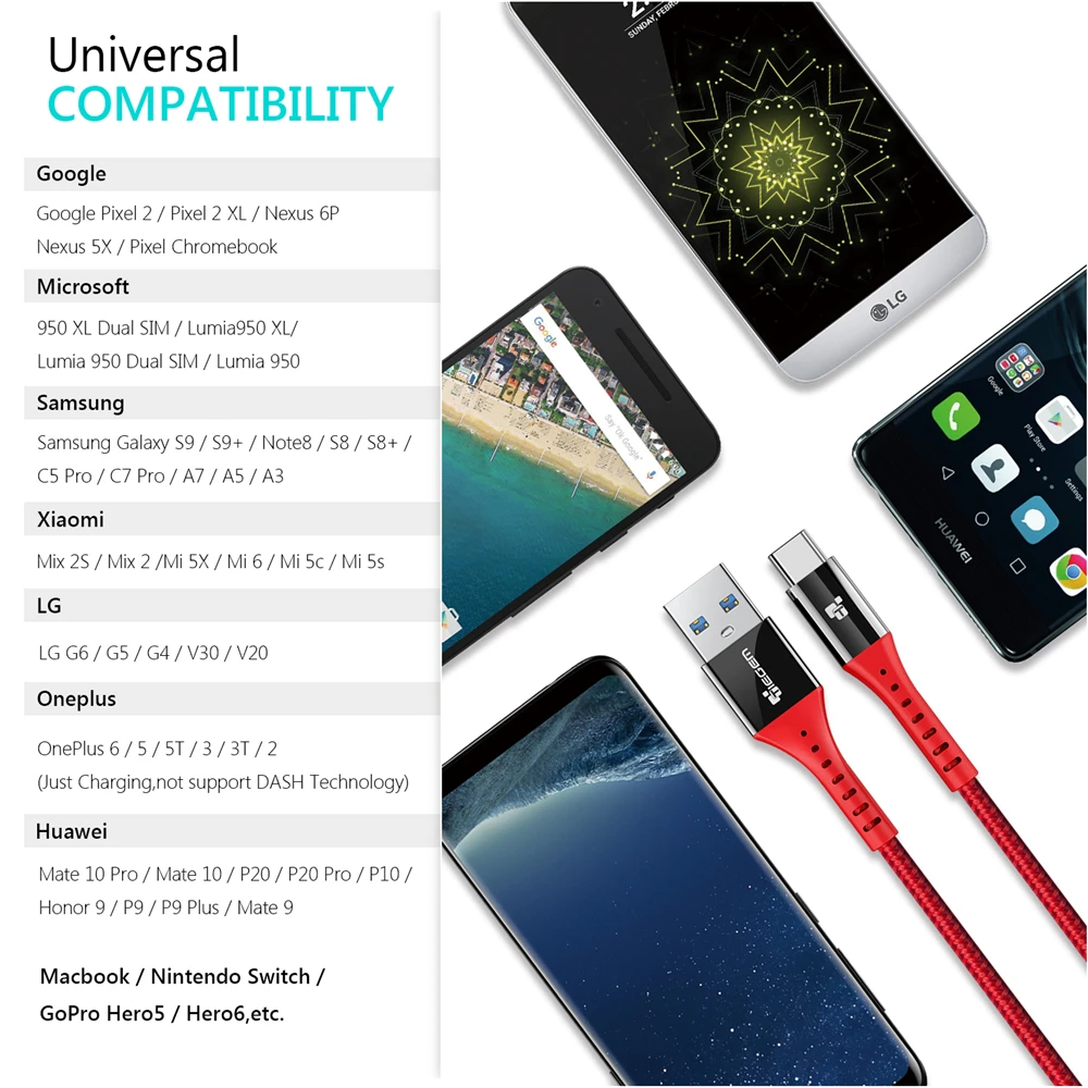 Compatible 1:Type C Cable for Samsung Galaxy Note 8,S8 Plus,LG V30 V20