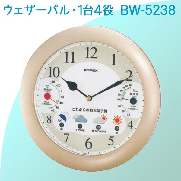 fk094igrjs見やすく、ハイセンスなデザインのお天気時計ですサイズ直径約250×45mm個装サイズ:26×26×5cm重量個装重量:750g素材・材質PS樹脂(塗装仕上)仕様掛型使用電源:単3乾電池×3機能:天気予測、温度計、湿度計、時計付属品単3乾電池×3、取扱説明書、保証書(保証期間:1年間)製造国日本これからのお天気と時刻がすぐにわかるお天気時計見やすく、ハイセンスなデザインのお天気時計です