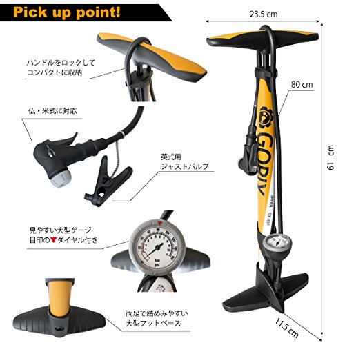 GORIX(고리구스)게이지 부착 자전거 공기 만들어 넣음(담는 그릇·상자 등) GX-33P 플로어 펌프 미식/불교식/영식 옐로우