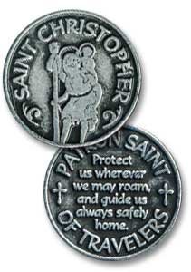 SIX (6) SAINT CHRISTOPHER Pewter POCKET Tokens PATRON SAINT of TRAVELERS - 1" Metal Coin - INSPIRATIONAL Gift - KEEPSAKE - SAFE TRIP Travel