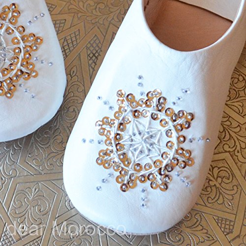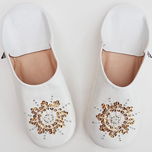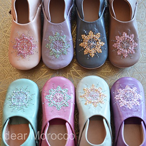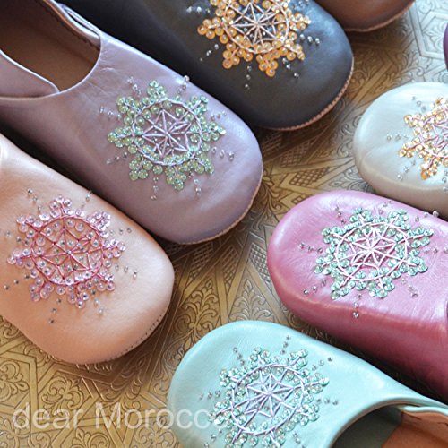 Binding : Kitchen Product Description Babouche is traditional Moroccan slipper made by hand with natural materials. There are about one hundred million sheep in Morocco. Sheep is used for food and products with wool and leather. Morocco has long history of tanning and still keep doing very traditional way of vegetable tanning. We choose the best leather that is very soft smooth for our babouche. Sabra is natural fiber made of cactus. It is elegantly shinny and strong like silk. We use sabra for embroidery. CONFORTABLE Babouche is not only beautiful, also very very comfortable. Many our clients repeat order because they enjoy comfort and design. DESIGN Most people care about what they wear to go out but not at home. Our babouchefs design and color make your foot looks beautiful and goes well with your clothes. FIT Babouche is made of natural leather. As time goes by, it fit your foot more and more. NATURAL What is the difference between real leather and synthetic leather? Real leather is getting aged but synthetic leather will be just old and dirty. Moroccan sheep is grown up in small farm and natural environment. Sheep is raised to eat and then, it is processed leather and wool. HANDMADE BY TRADITIONAL CRAFTSMAN It is not mass production. Babouche is handmade by craftsman with traditional way. Most of them are sons of craftsman. Traditional skills are still alive in Morocco. Embroidery is made by women at home. They work besides domestic duties. QUALITY As we work for Japanese clients for more than 10 years, we care about quality a lot. We believe we have the best quality in Marrakech. Our babourhes are made by our craftsman; we choose all the material by ourselves and do almost every process in our factory. Babouches are inspected 3 times before shipping. 0