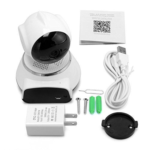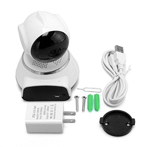 -. Feature : 720P Full HD IP Camera - Full-HD Premium 1280*720 resolution, good image quality. No matter where you are, you can always see what you want to see through iOS/Android smartphone, Windows PC and Apple Mac Software and http web browsers, you may use it as a baby monitor to view your baby even you are outside home / Night Vision Camera - Built in IR filter with infraed IR LEDs, the range of the night vision is up to 20 feet, provide a stunning clear vision through infrared red light even in the darkness. Never miss out on any moment even at night / Wider View Angle - This mini wifi ip camera provides wider viewing angle with horizontal 355 degree (pan) and vertical 90 degree (tilt) with 4x digital zoom function for complete coverage of your home (pan and tilt function). There is presets which can be adjusted to some places and zoom to make it bigger to see / Easy Setup and Motion Detection - Simple and Easy Mobile Wi-Fi Setup for iOS and Android devices. Plug in power, download App and set up via Phone, remote access to camera on phone/tablet/PC. Motion detection with push alert notifications based on motion sensing technology. When the camera detected abnormity or alarm is triggered, instant alarm will be sent message to APP. You also can set it record to SD card when detect motion / Two-way Audio Wireless Camera - Built in Speaker and Microphone, so that you can chat freely and smoothly with your beloved one via microphone device.Talk and listen with Two-way audio communication through your mobile device. Supports MicroSD up to 64GB
