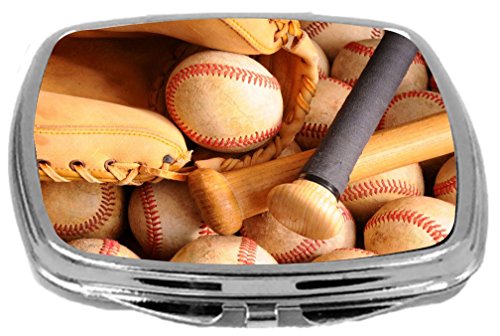 Rikki Knight Compact Mirror, Vintage Baseball Equipment with Bat Balls and Glove, 3 Ounce