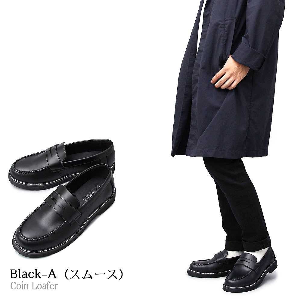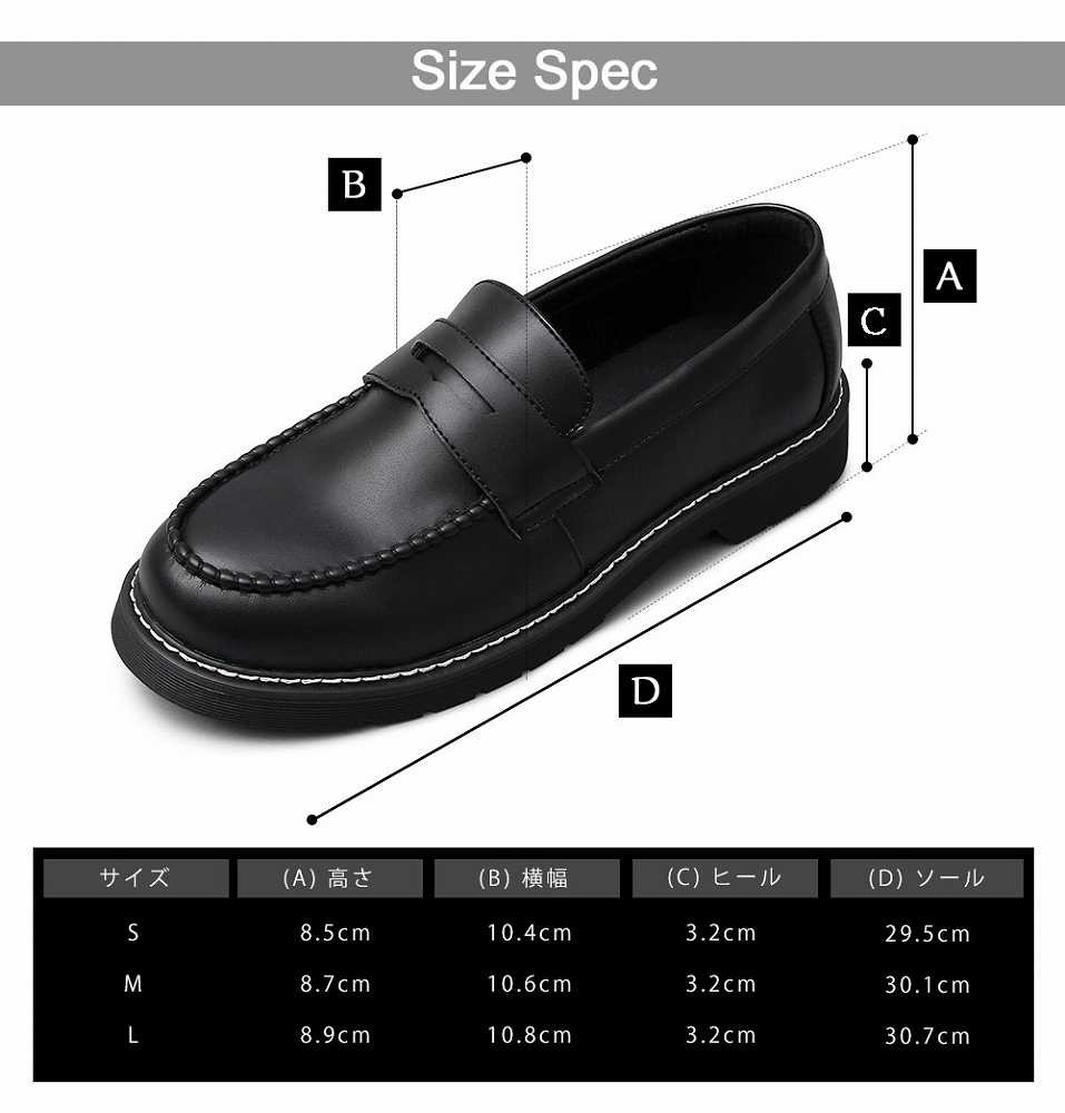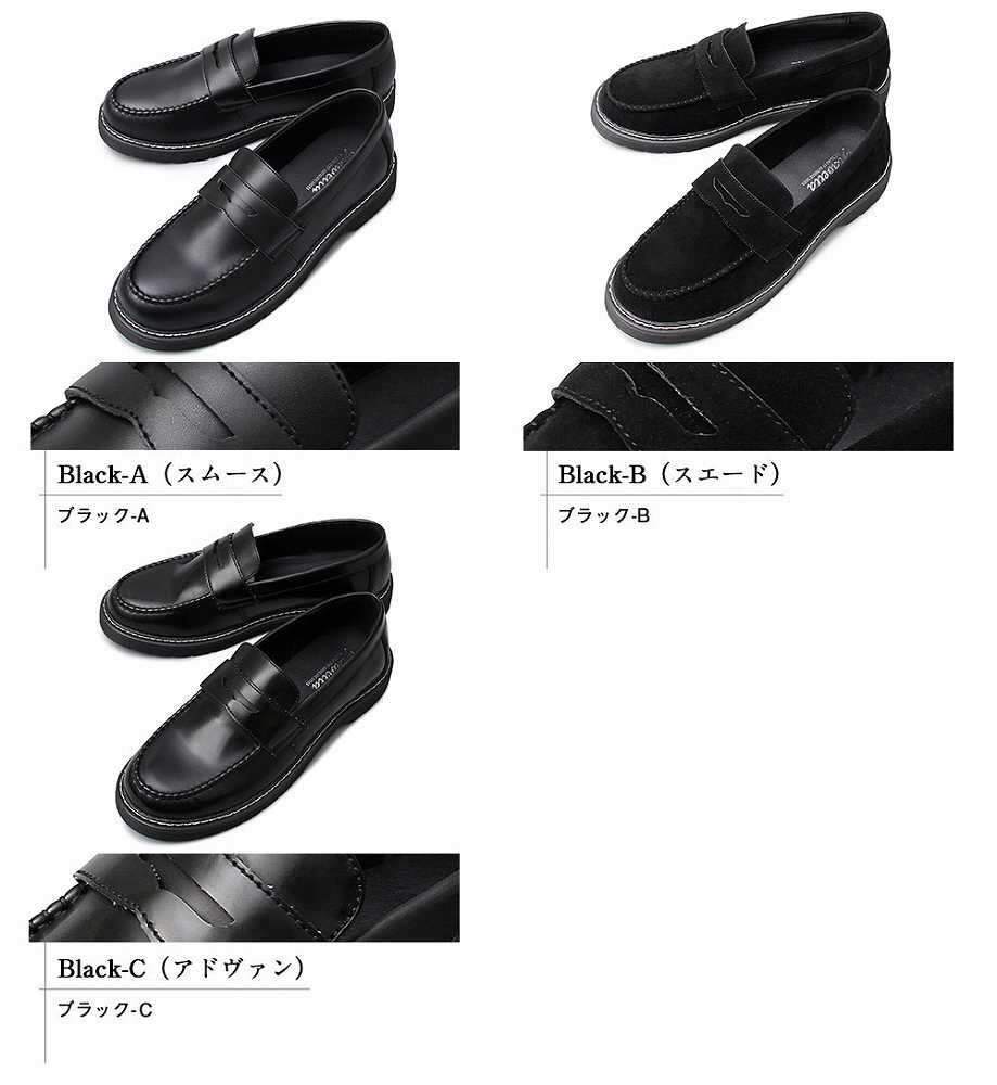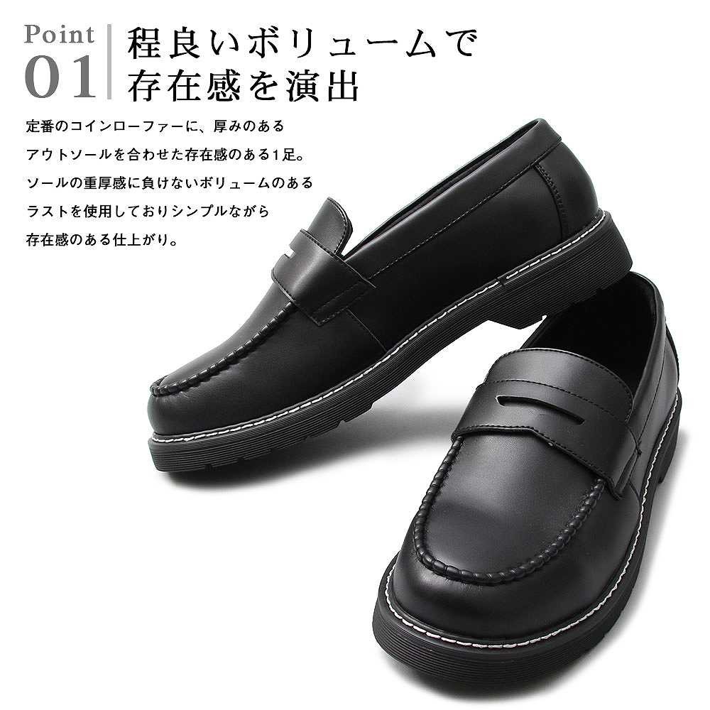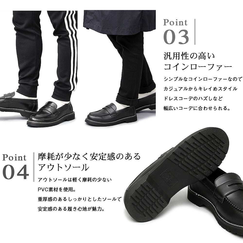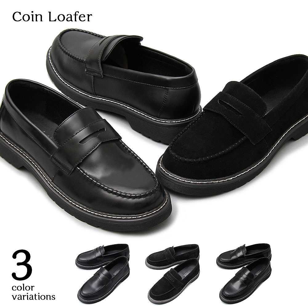【商品説明】”シンプルながら存在感のあるコインローファー”定番のコインローファーに、厚みのあるアウトソールを合わせた存在感のある1足。ソールの重厚感に負けないボリューム感のあるラストを使用しており、シンプルながら存在感のある仕上がり。ベースはシンプルなコインローファーなので、カジュアルからキレイめスタイル、ドレスコーデのハズしなど幅広いコーデに合わせられる汎用性の高いアイテム。ブラックでもそれぞれに個性のある3素材を使用。適度な光沢のスムース素材は、定番的で使いやすさが魅力。落ち着いたカジュアル感を演出できるマットな質感のスエード素材。艶感のあるアドヴァン素材は存在感をより高め、足元にポイントを持ったコーデが楽しめる。モカシン部分はハンドステッチを施しており、手作業でしか出せないアジのある表情も魅力。アウトソールは軽く摩耗の少ないPVC素材を使用。厚みのあるしっかりとしたソールで、安定感のある履き心地。【サイズ】S (25.5cm-26.0cm)M (26.0cm-26.5cm) L (26.5cm-27.0cm)【素材】アッパー/合成皮革ソール/合成ソール【生産国】中国